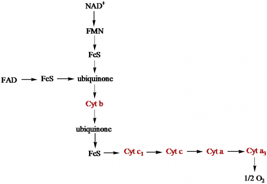 Figure-1 – An overview of the Electron transport chain. FeS represents the iron-sulfur center, and cytochrome b,c1 are components of complex III.