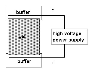 - Ends are fixed to dip in buffer solutions in two troughs fitted with electrodes
