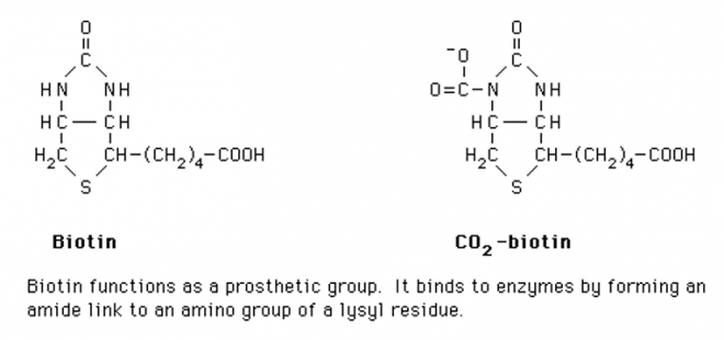 Figure-2- showing the attachment of Biotin to the enzyme and the formation of carboxy biotin. Biotin is the first acceptor of the carboxyl group