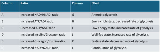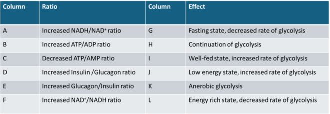 B: Increased ATP/ADP ratio → (Energy rich state, decreased rate of glycolysis):