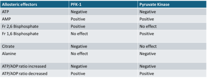 o Positive: AMP, Fructose-2,6-bisphosphate, Decreased ATP/ADP Ratio
