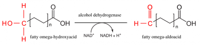 Figure 2- dehydrogenation of omega hydroxy acid to form omega aldoacid.