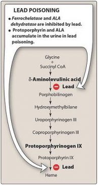 Figure 2– shows the inhibition of ALA dehydratase and Ferrochelatase by lead.