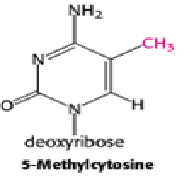 ii) Modification of DNA- The modification of DNA provides another mechanism, in addition to packaging with histones, for inhibiting inappropriate gene expression in specific cell types. Methylation of deoxycytidine residues (Figure-3) in DNA may affect gross changes in chromatin so as to preclude its active transcription. Acute demethylation of deoxycytidine residues in a specific region of the tyrosine aminotransferase gene—in response to glucocorticoid hormones—has been associated with an increased rate of transcription of the gene. However, it is not possible to generalize that methylated DNA is transcriptionally inactive, that all inactive chromatin is methylated, or that active DNA is not methylated.