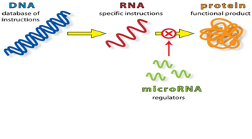 Figure 4- showing the mechanism of action of micro RNAs, micro RNAs, short non-coding RNAs present in all living organisms, have been shown to regulate the expression of at least half of all human genes. These single-stranded RNAs exert their regulatory action by binding messenger RNAs and preventing their translation into proteins.