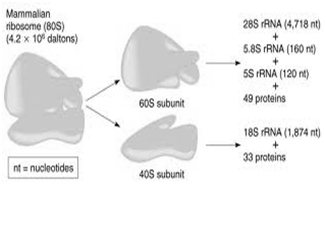 Figure 3- showing the structure of mammalian ribosomes- Ribosomal RNA is the structural component of ribosomes.