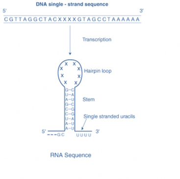 Figure-5-showing the hairpin structure formed in the primary transcript structure due to the presence of self-complementary base pairs
