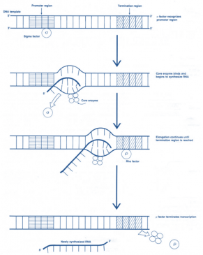 The process of transcription of a typical gene of E.Coli can be divided into three phases-